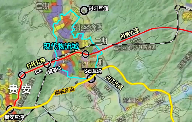 福州現代物流城位于連江縣西北部,南起福州東北繞城高速,北至連江縣丹陽鎮(zhèn)坂頂村,東起羅長高速,西至縱三線,總體規(guī)劃面積62.2平方公里,其中核心區(qū)規(guī)劃面積26.9平方公里。福州現代物流城交通網絡發(fā)達,公鐵、海鐵聯運和航空交通條件成熟,可與寧德市區(qū)、福州中心城區(qū),可門港區(qū),馬尾港區(qū)、福州長樂機場等組成半小時交通圈,貨物可通過周邊的港口、鐵路、公路和航空快速運輸到目的地。